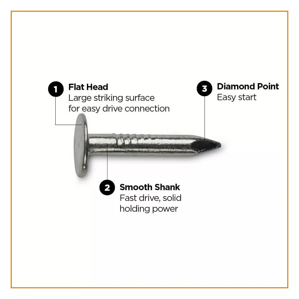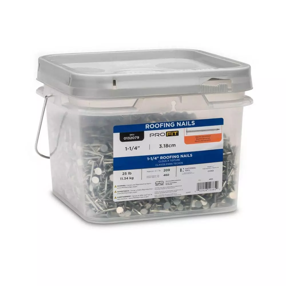 Use PRO-FIT roofing nails to apply roofing asphalt shingles, insulation board, and felt to wood substrates or to attach vinyl siding. The diamond point starts quickly, while the large head and heavier shank gauge provide greater holding power. PRO-FIT roofing nails are electro galvanized to resist corrosion and come in a variety of styles to fit multiple job requirements.