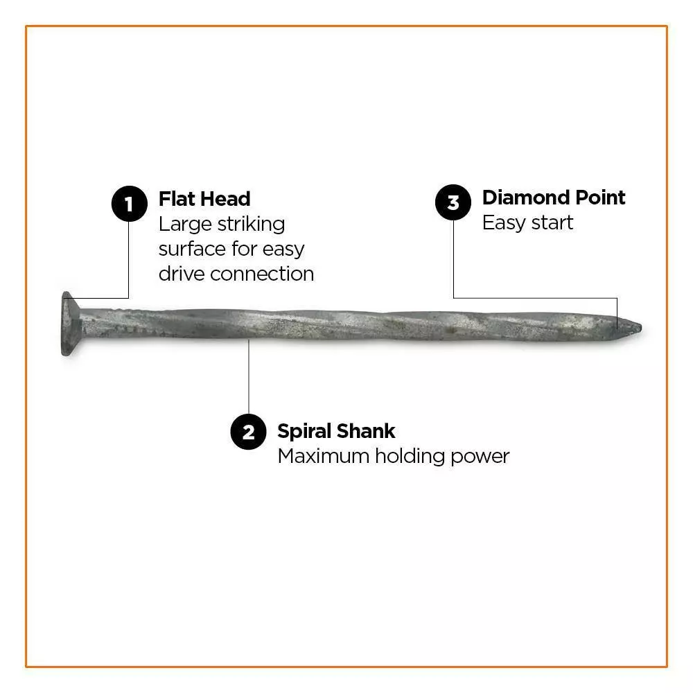 Spiral shank holds strong, offering greater pull-out security