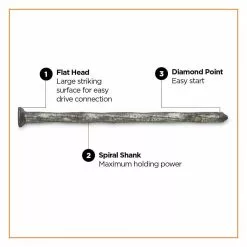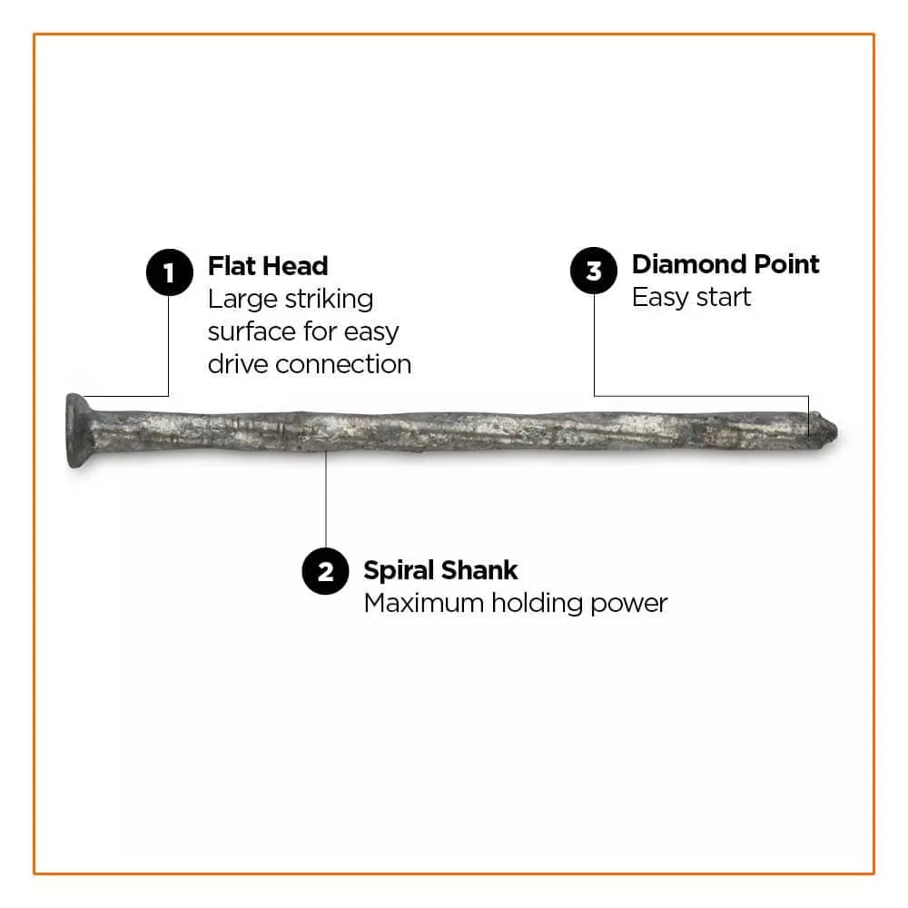 - Shank Style: Spiral shank resembles a screw pattern, which offers superior holding power and withdrawal force