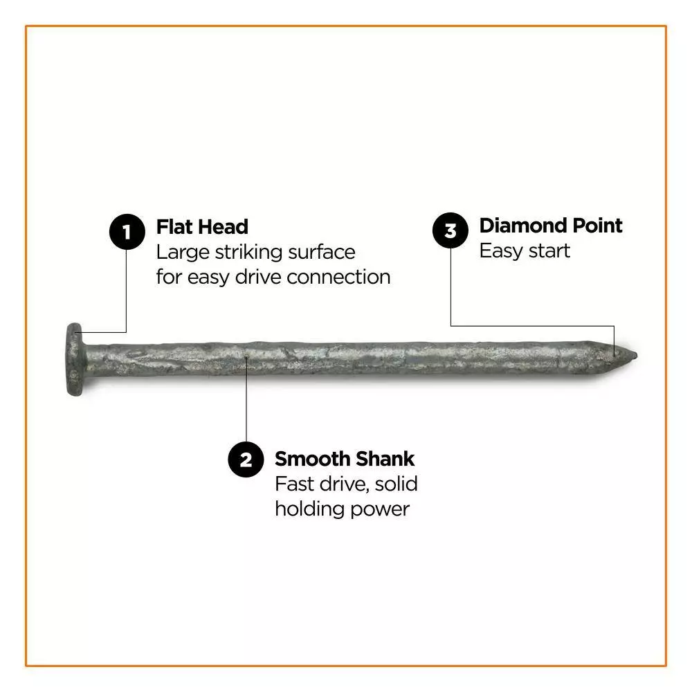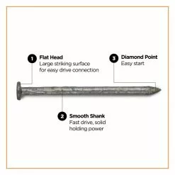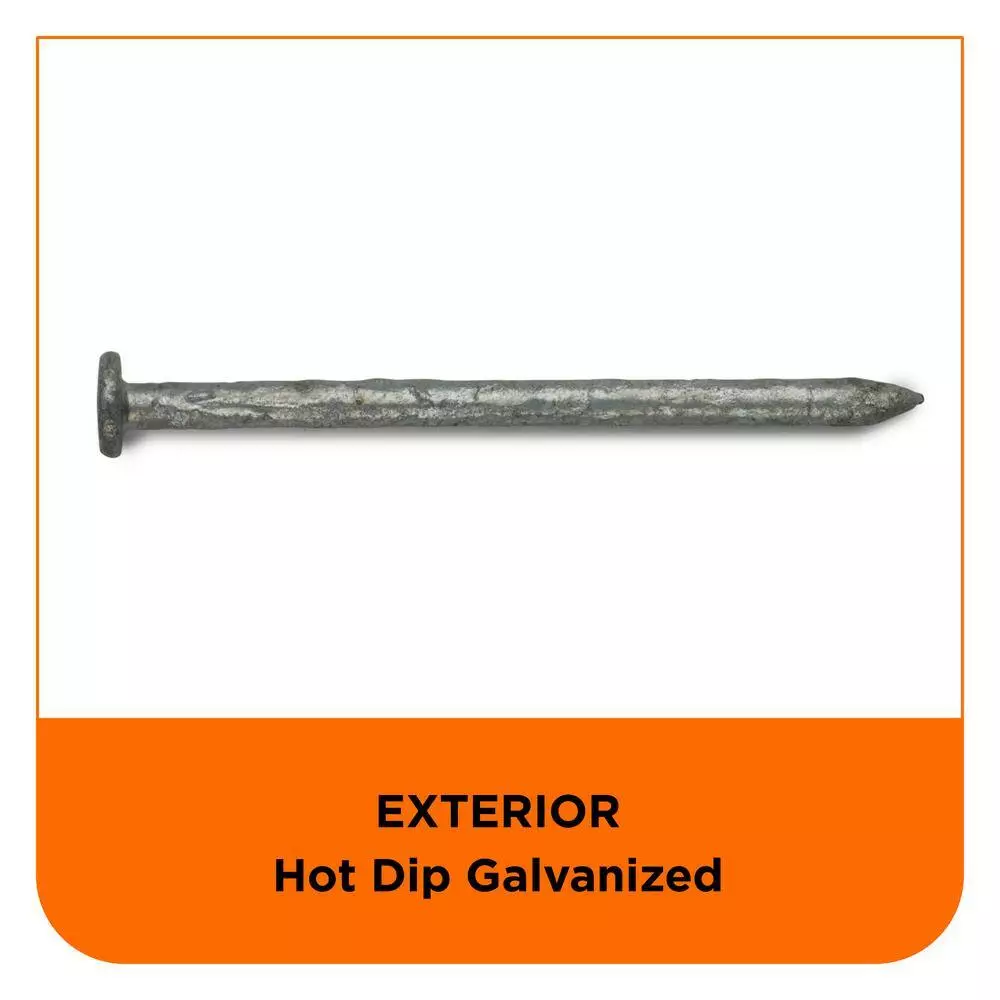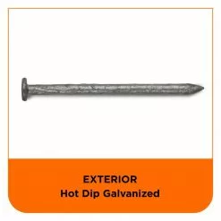 Exterior common nails are used for framing, carpentry, and general construction where a smooth shank for driving ease is desired. PRO-FIT common nails are hot dipped galvanized, conforming to ASTM A153 for corrosion resistance in outdoor projects. Rely on PRO-FIT common nails for just about any exterior project where you use construction lumber. PRO-FIT common nails are fast to drive with a diamond point and a smooth shank. The head design is 3-4 times the size of the shank, providing easy connection and reliable holding power.