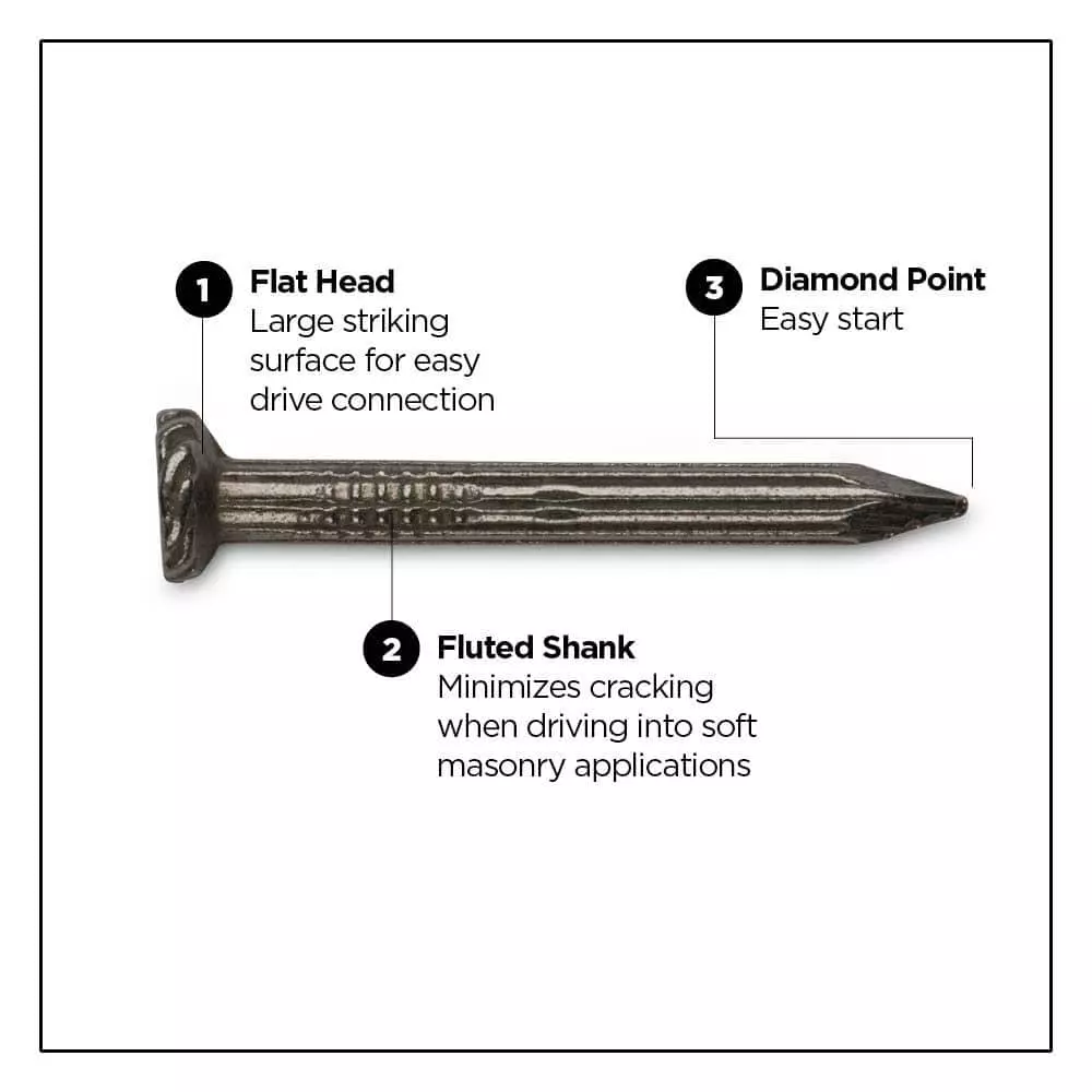 - Shank Style: Fluted shank offers vertical threads to minimize cracking when driving into cinder blocks, mortar joints, and other masonry applications