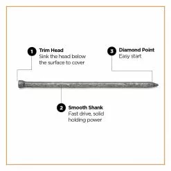 - Applications: Designed for use in trim and other finishing projects where the nail head should be below the surface, including door and window frames, flooring, and trim