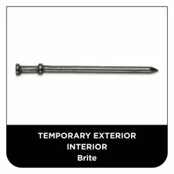 PRO-FIT duplex nails are designed to be temporary and are commonly used for projects such as concrete forms, wood scaffolding, and other temporary interior and exterior fixtures. The double head of the duplex nail allows the nail to securely seat against the first head on the shank of the nail while the secondary head remains extended to allow the claw of the hammer to grab and back out. These nails also feature a diamond point and smooth shank that makes these easy to drive.