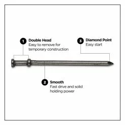 - Head Style: Double head stops the nail at the secondary head on the shank, allowing for easy removal