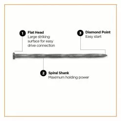 - Shank Style: Spiral shanks resemble a screw pattern which offers superior holding power and withdrawal force, while the thin shank allows for optimal driving