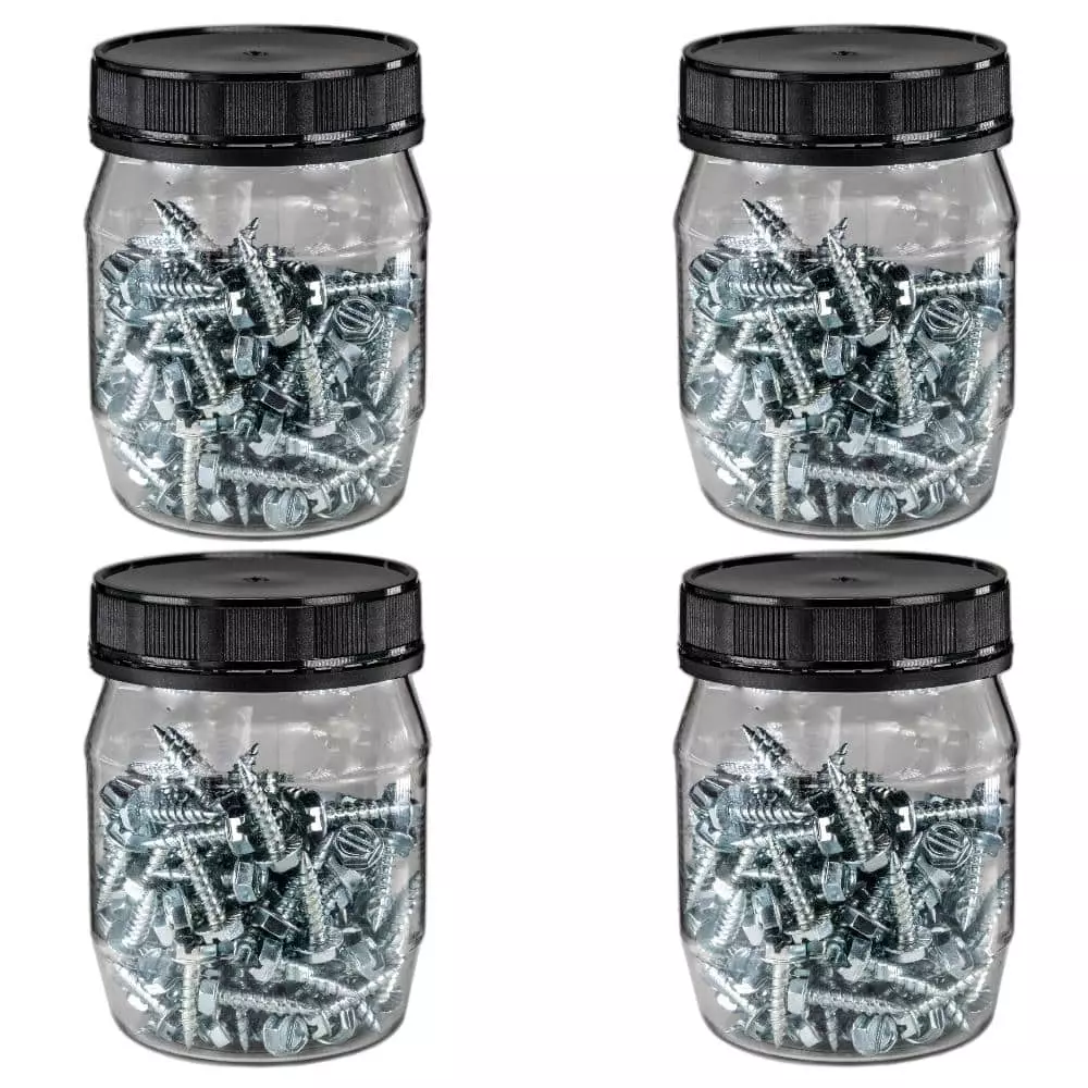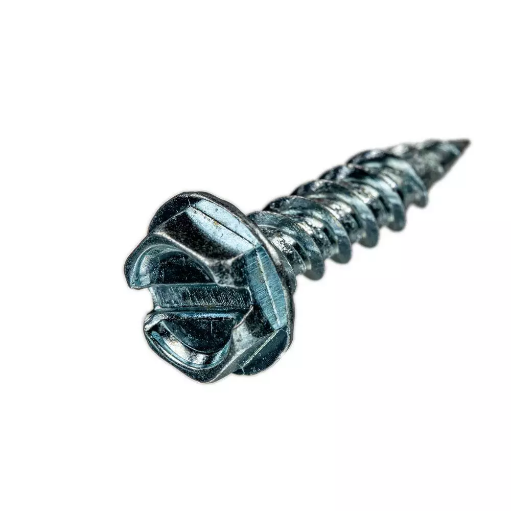 #10 x 3/4 in. zinc screw for sheet metal has dual thread design to provide penetrating power and fast engagement. The package contains 4 clear jars of 100 screws each. Screws come with slotted hexagonal head with flat washer.
